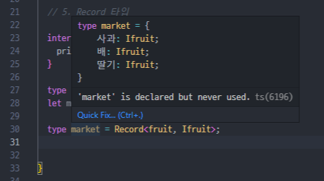 Record타입은 이렇게 union 타입으로 만들어 놓은 것을 키 값과 Value로 사용할 수 있다.