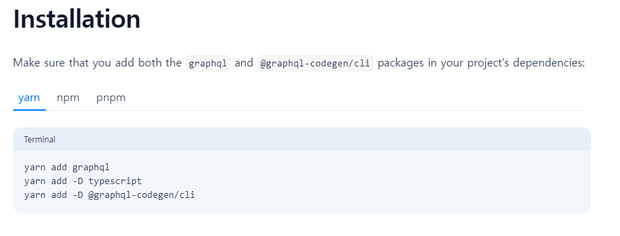 https://the-guild.dev/graphql/codegen/docs/getting-started/installation