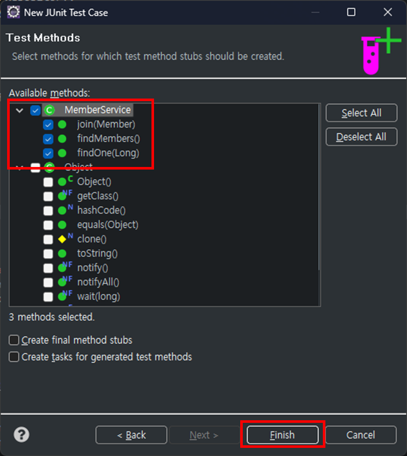 다음과 같이 직접 코드를 작성하지 않아도 자동으로 테스트 케이스가 만들어 지는 걸 확인할 수 있다
