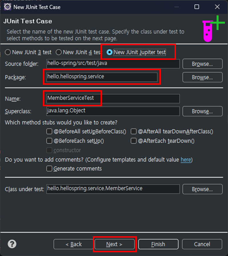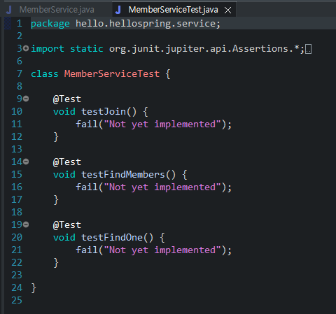 Test 폴더에서 테스트파일을 따로 만든 후 JUnit을 통해 테스트를 할 수 있다.