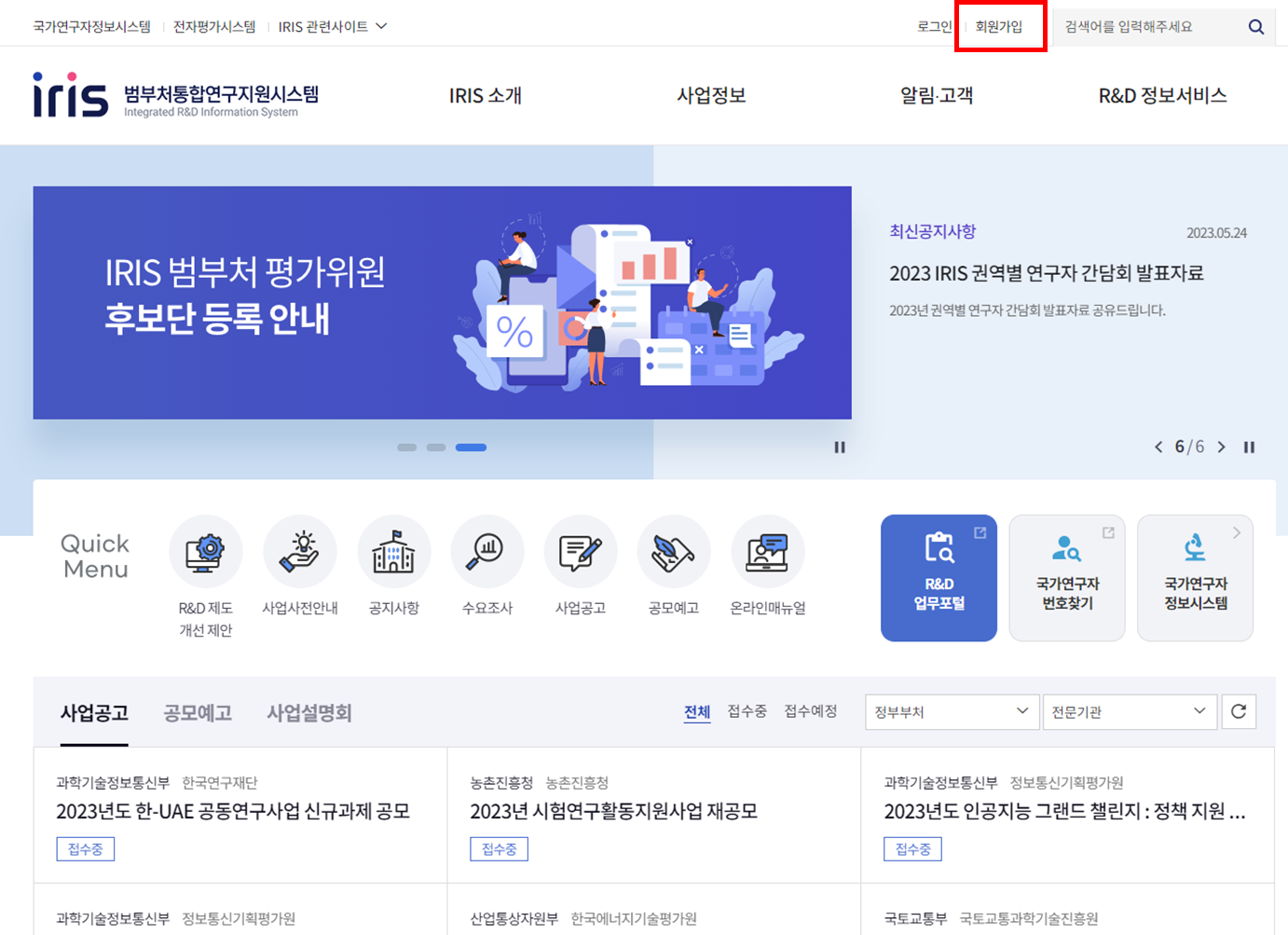 1. 범부처통합연구지원시스템 홈페이지에 접속