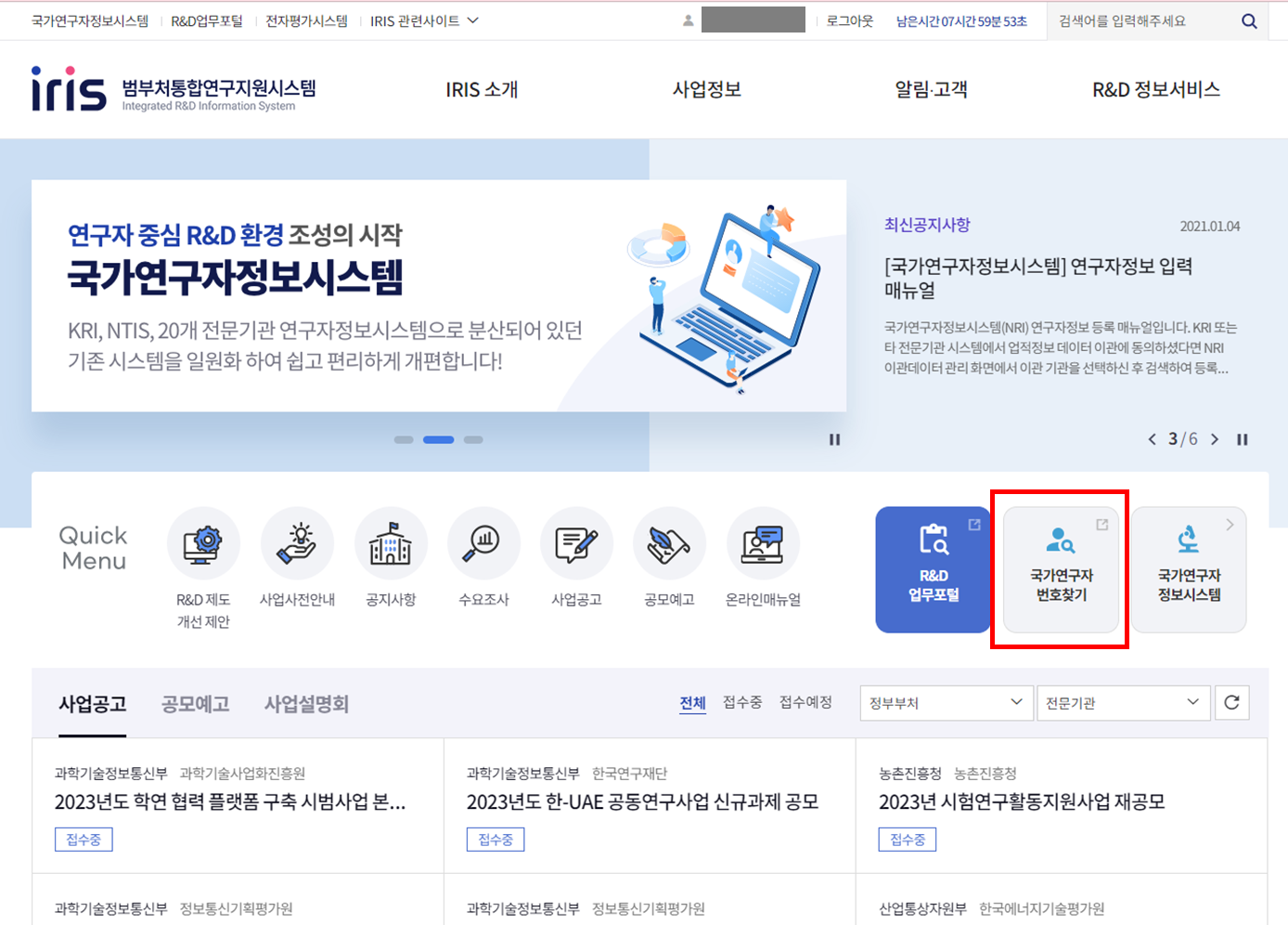 이 번호를 발급받아야 국가 R&D 과제를 신청할 수 있는 자격이 주어지고,