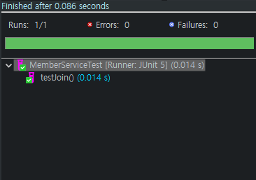 그 다음 MemberServiceTest의 코드를 다음과 같이 변경한다
