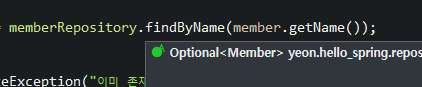 Optional<Member> result = memberRepository.findByName(member.getName());