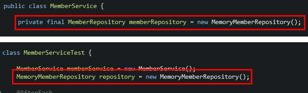 MemoryMemberRepository repository = new MemoryMemberRepository();
