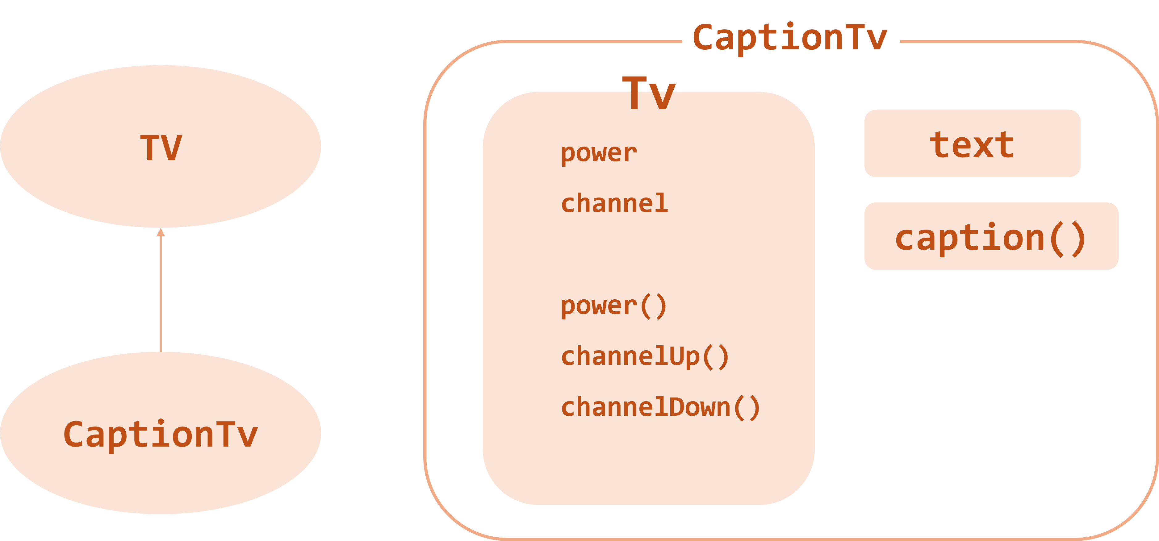 즉, Tv 클래스에 정의되지 않은 text와 caption()은 사용이 불가능하다