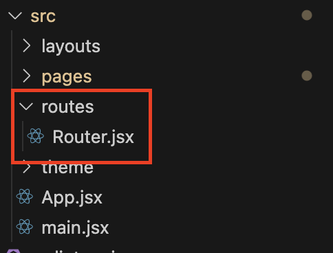2. routes ํด๋๋ฅผ ๋ง๋ค๊ณ ๊ทธ ์์ Router.jsx ํ์ผ ์์ฑํ๊ธฐ