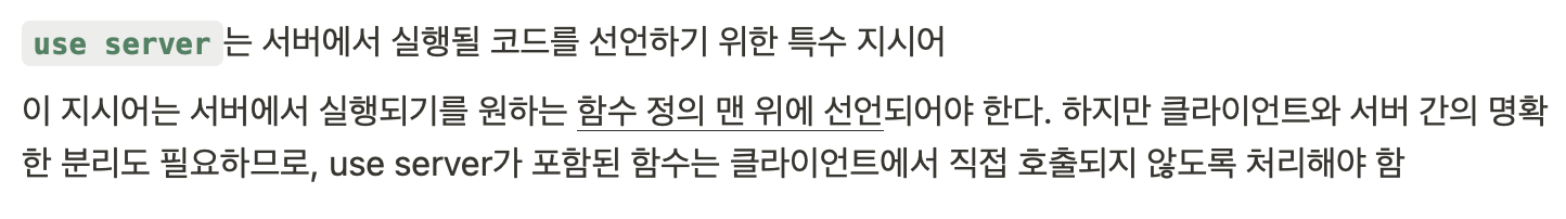 서버 액션은 서버에서만 실행되기 때문에, 클라이언트에서 민감한 로직을 실행하지 않아도 됩니다. 중요한 데이터 처리나 비즈니스 로직을 서버 측에서 안전하게 처리할 수 있으며, 클라이언트는 결과만 받아 처리하게 됩니다.