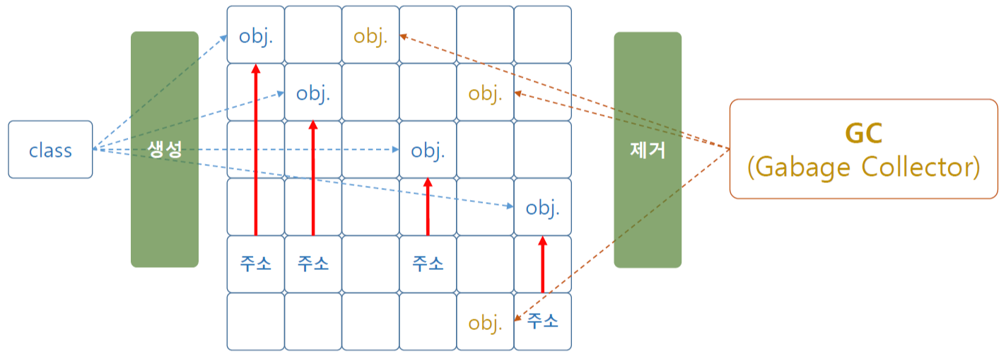 개발자는 Class로 부터 객체를 생성해서 사용하면 된다. 필요 없어진 객체는 개발자가 신경쓰지 않아도 GC가 알아서 처리해준다!